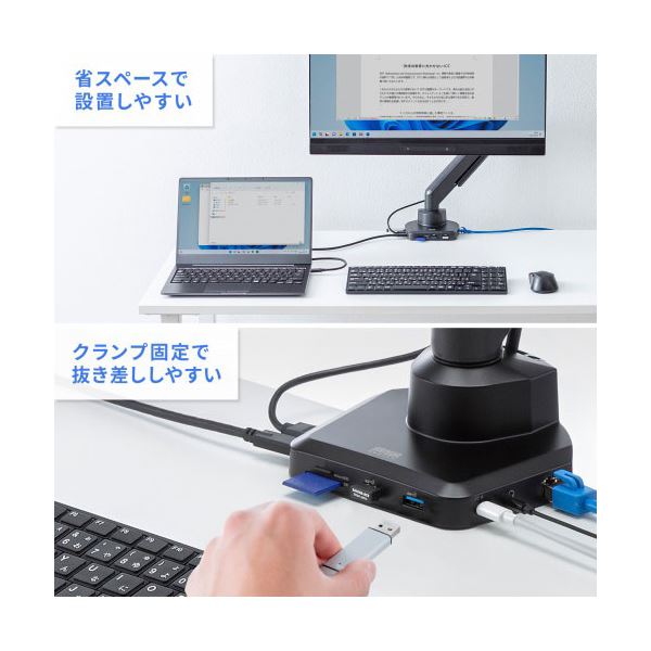 ●ベース部にドッキングステーションを内蔵したモニターアームです。