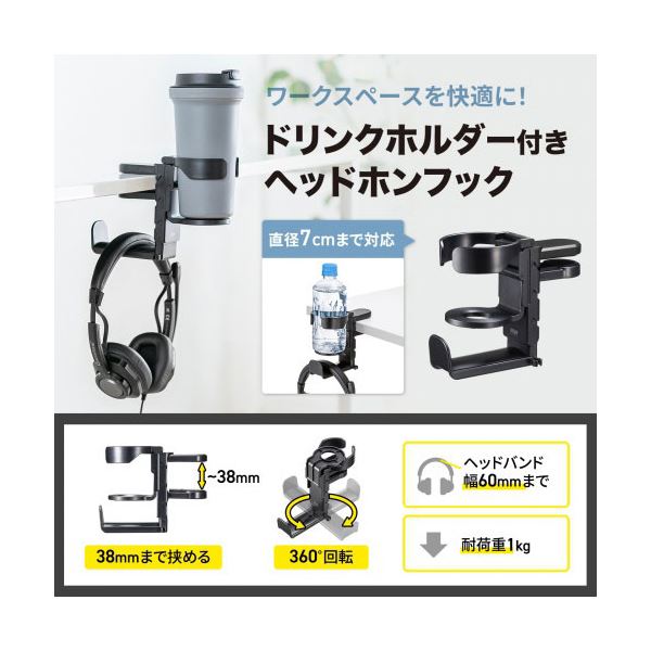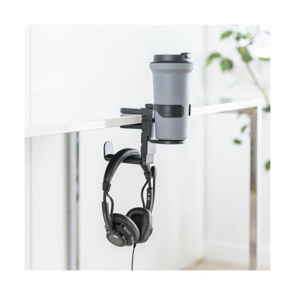 サンワサプライ ドリンクホルダー付ヘッドホンフック PDA-STN71BK