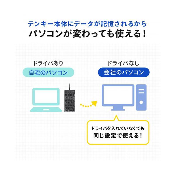 ●割り付けた機能はテンキーのメモリーに保存されているので、一度設定すればドライバの入っていないパソコンでも同じ機能が使えます。