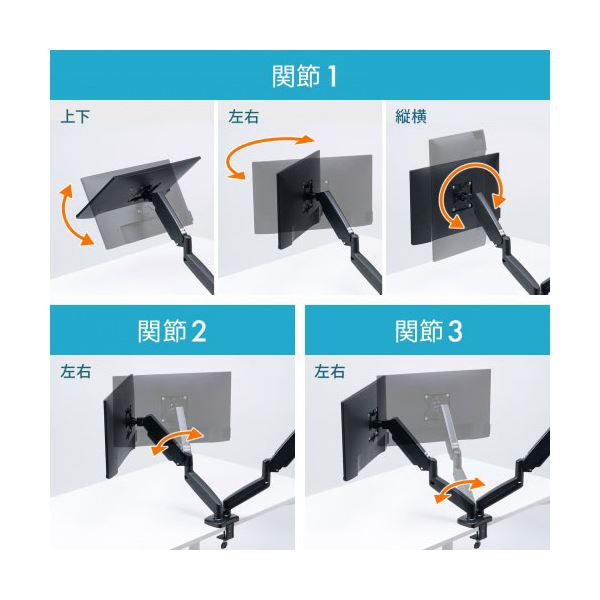 ※設置するモニターにより、上下左右の角度調節範囲が通常より制限される場合があります。