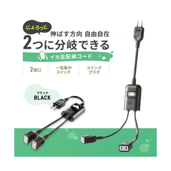 サンワサプライ 一括集中スイッチ付き電源延長コード 2P 2分岐 2個口 ブラック TAP-EX2SWBK