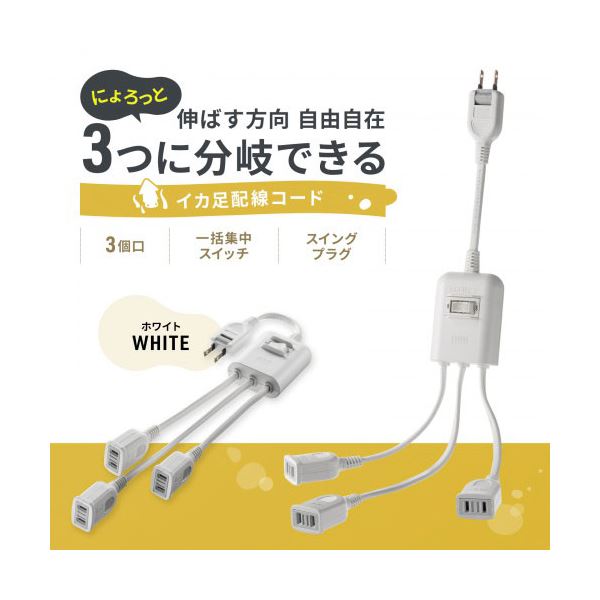 サンワサプライ 一括集中スイッチ付き電源延長コード 2P 3分岐 3個口 ホワイト TAP-EX3SWW