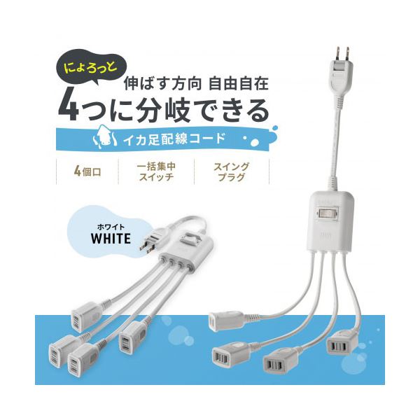 サンワサプライ 一括集中スイッチ付き電源延長コード 2P 4分岐 4個口 ホワイト TAP-EX4SWW