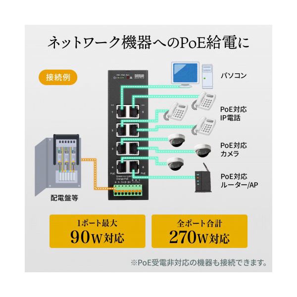 ■PoE対応ポート出力 : af規格 : 15.4W/1ポート(最大), at規格 : 30W/1ポート(最大), bt規格 : 90W/1ポート(最大)