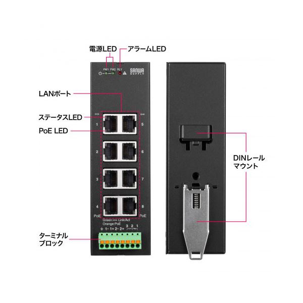 サンワサプライ 産業用ギガビット対応PoEスイッチングハブ IEEE802.3bt/8ポート LAN-GIGAPOEFA84