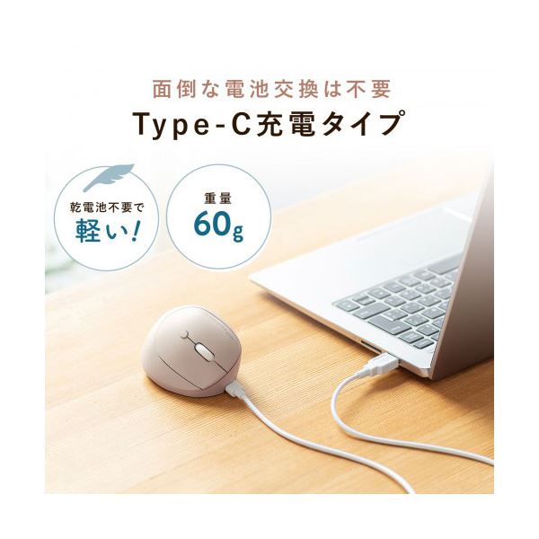 ●専用USBType-Cケーブルで充電できる充電式のマウスです。