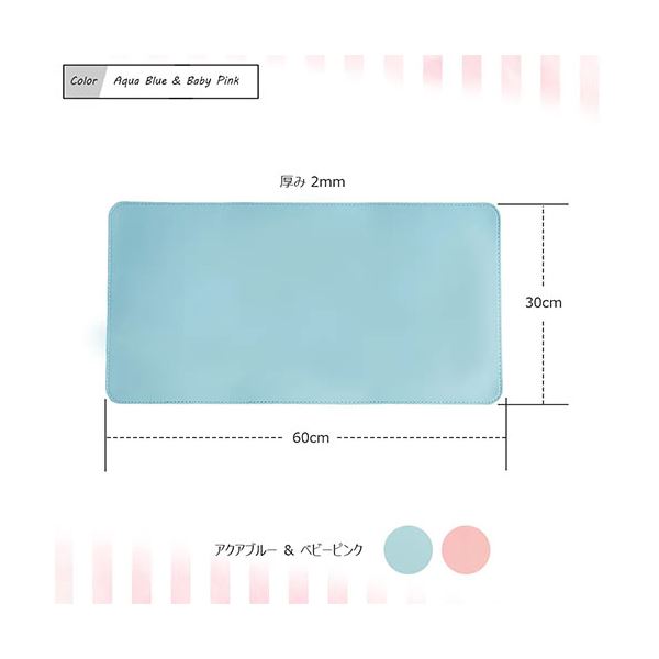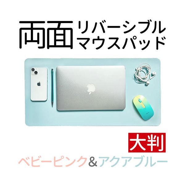EGRET 両面リバージブルマウスパッド 大判 30×60cm ベビーピンク&アクアプルー EM23-DP4