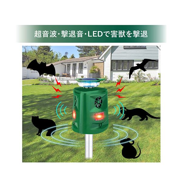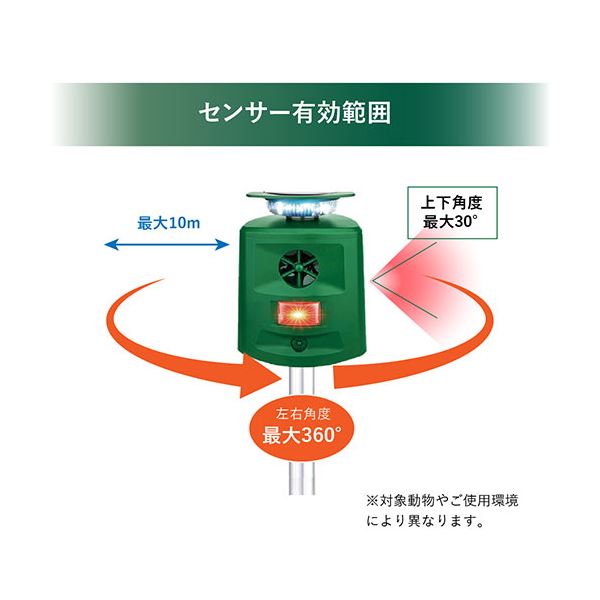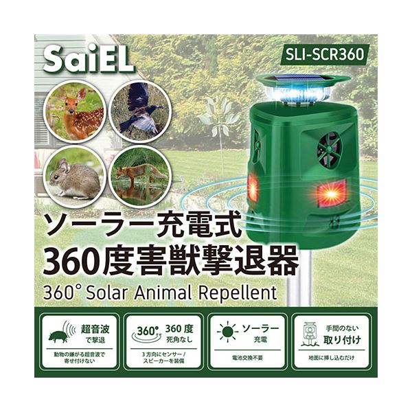 SaiEL ソーラー充電式 360度害獣撃退器 超音波で撃退/死角なし/太陽光発電/地面に挿すだけ SLI-SCR360