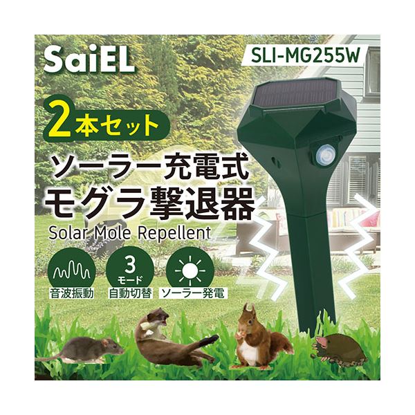 SaiEL ソーラー充電式 モグラ撃退器 2本セット 音波振動/3モード自動切り換え/太陽光発電 SLI-MG255W