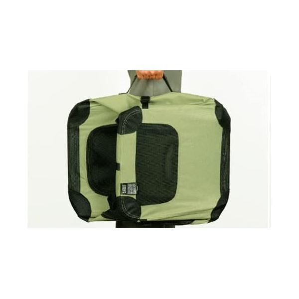 ワンタッチで組み立て、折りたたみできるスライド・ホールディングシステム。金属フレームを使用し、高い強度を実現しました。底面には防水のビニール生地を使用。地面からの水や湿気が内部に入り込まないので、直接地面に置いても大丈夫。本体カバーは取り外して丸洗いもOK!汚れが拭き取りやすいよう内側は撥水加工されています。天面ドアと正面メッシュドアは巻き上げてマジックテープで固定できます。