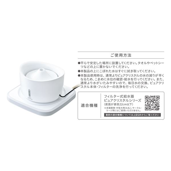 ・本製品使用時は、通常よりピュアクリスタルの水の減りが早くなるため、こまめに水位の確認・給水を行ってください。また、通常より水がいたみやすいので、毎日水の交換、ピュアクリスタル本体・フィルターの洗浄を行ってください。