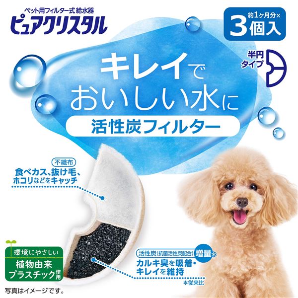 (まとめ) ピュアクリスタル 活性炭フィルター 半円 犬用 3個入 【×2セット】