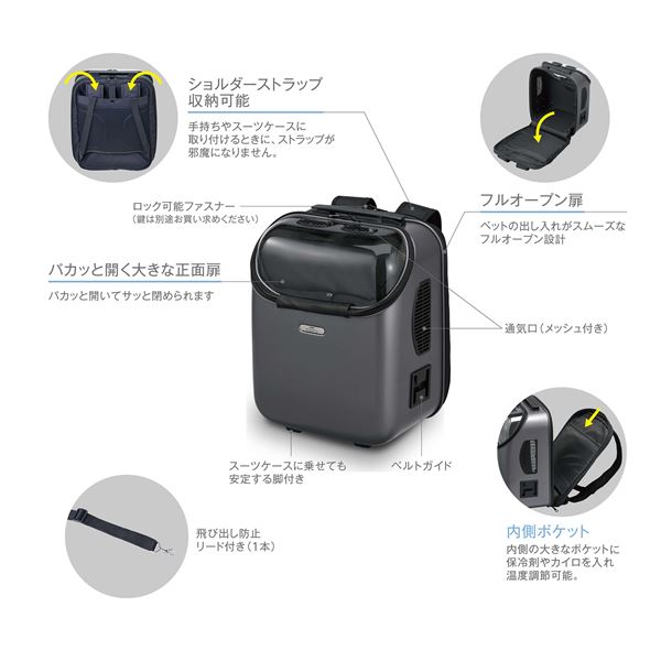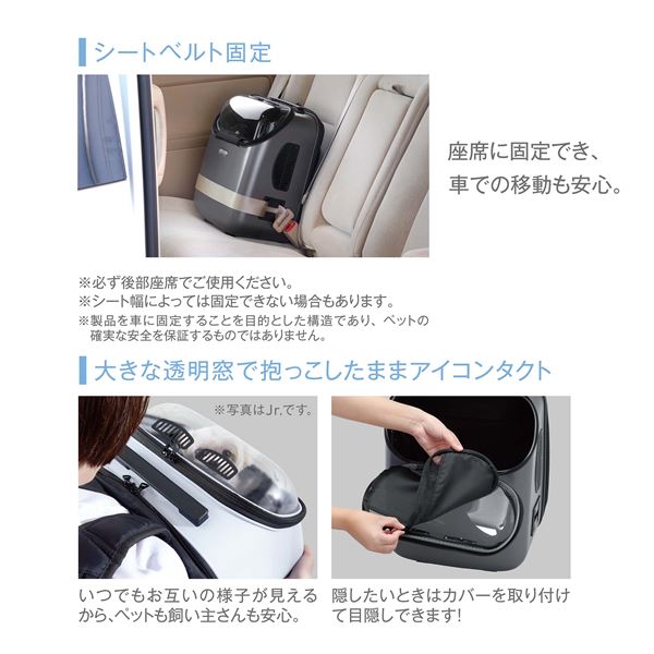 ・大きな透明窓で抱っこしたままお互いの様子が見えるのでペットも飼い主さんも安心。隠したい時はカバーと取り付けて目隠しもできます。