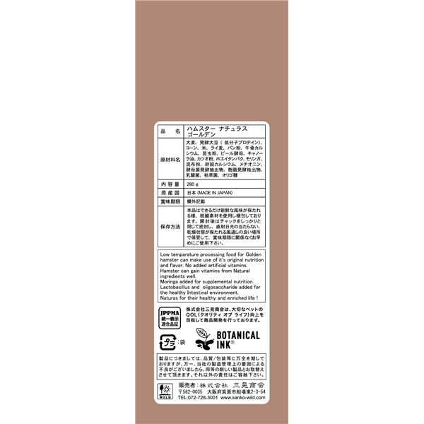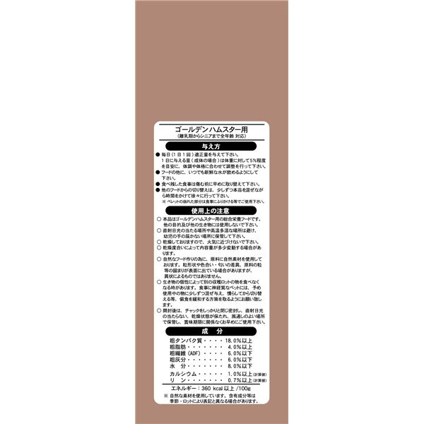 ・本品はゴールデンハムスター用の総合栄養フードです。他の目的及び他の生き物には使用しないでください。