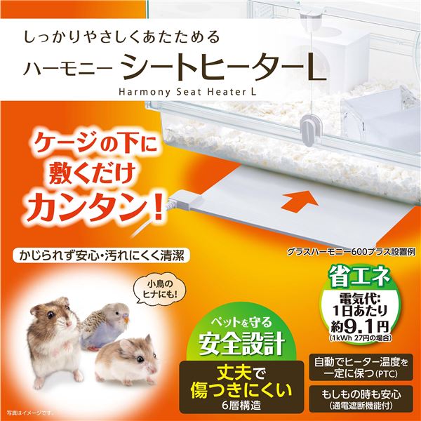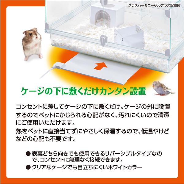 ケージの下に敷くだけで簡単設置!しっかりやさしくあたためるシートヒーターです。