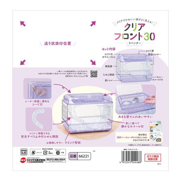・かわいいしぐさを見逃さない!前面オールクリアガラスケージです。