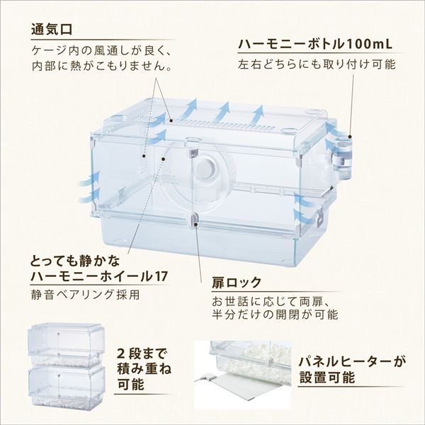 ・通気口:ケージ内の風通しが良く、内部に熱がこもりません。