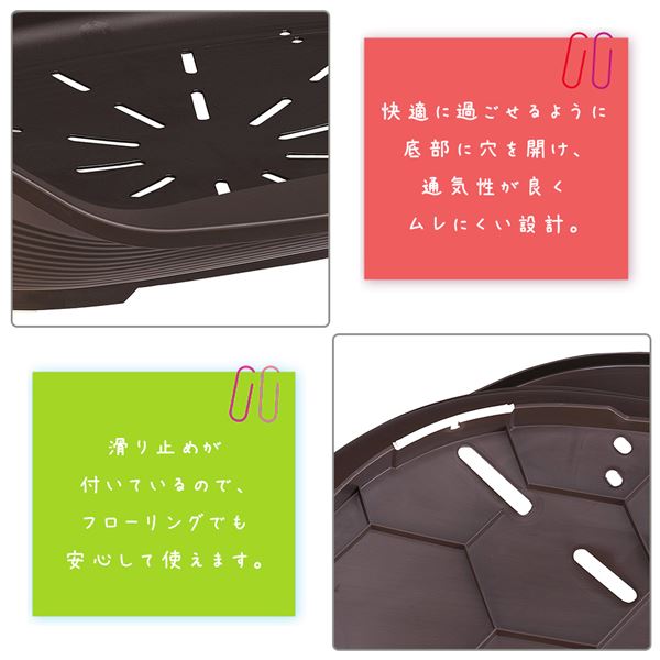 ・快適に過ごせるように底部に穴を開け、通気性が良くムレにくい設計。