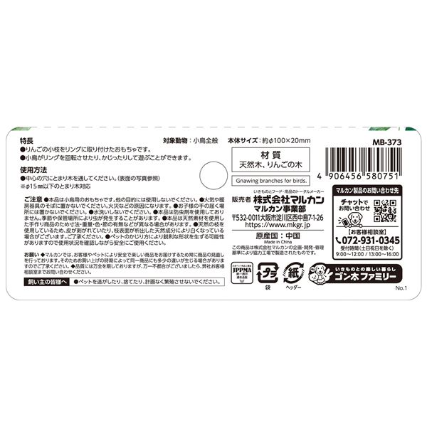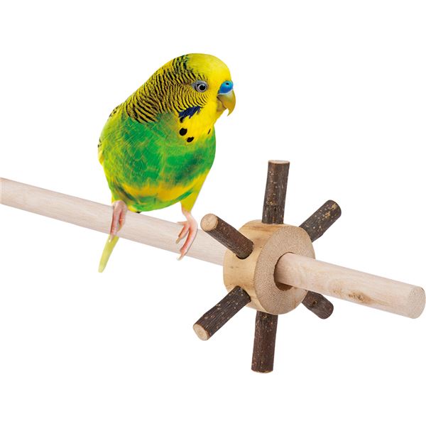 ・とまり木に通して、回したりかじったりできるりんごの小枝を使用したおもちゃです。