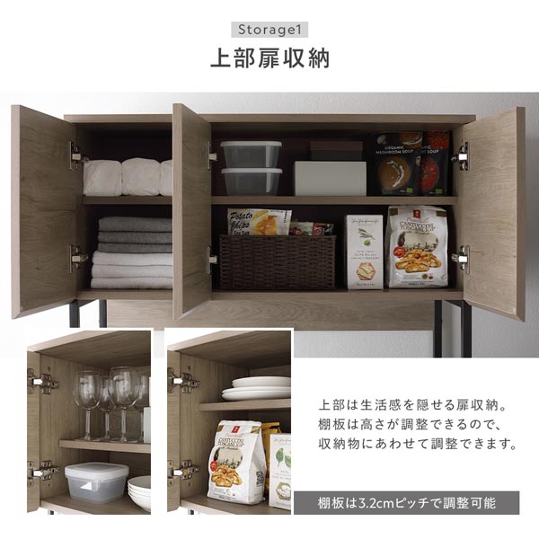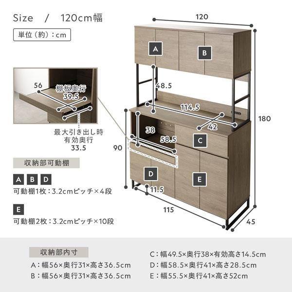 キッチンボード 120cm幅 グレージュ 家電収納 キッチン収納 組立品