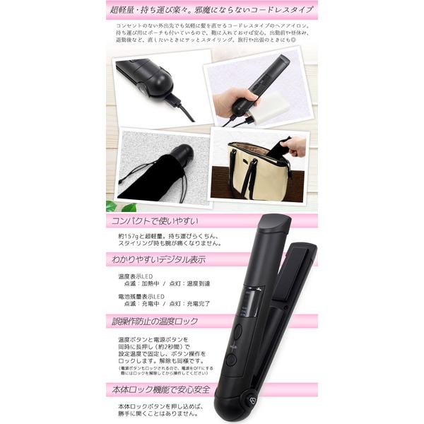【訳あり・在庫処分】外出先でもサッとスタイリング!ストレートもカールも簡単!USB充電式ミニヘアアイロン