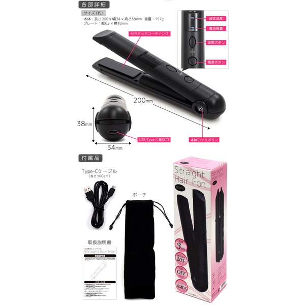 【商品名】USB充電式ミニヘアアイロン