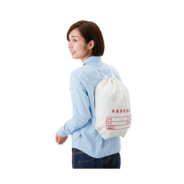 避難場所・住所・氏名を記入できる両リュック・非常用持ち出し袋です。非常時に役立つチェックリスト付きなので、いざというときの準備に便利です。