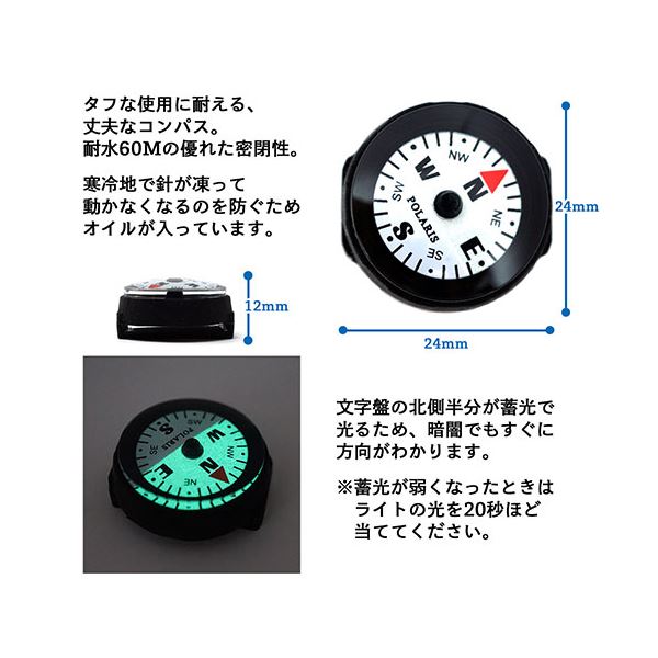 ●文字盤の北側半分が蓄光で光るため、暗闇でもすぐに方向がわかります。