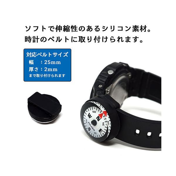 ●時計のベルトに装着して持ち歩ける、ミニサイズのコンパスです。
