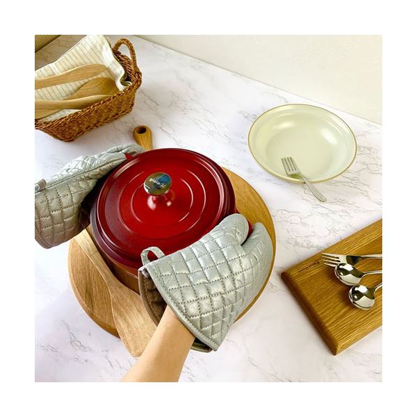 ・チェック状にステッチがあり、滑りにくい仕様なので、熱いお鍋やお皿も安心して持ち運ぶことができます。