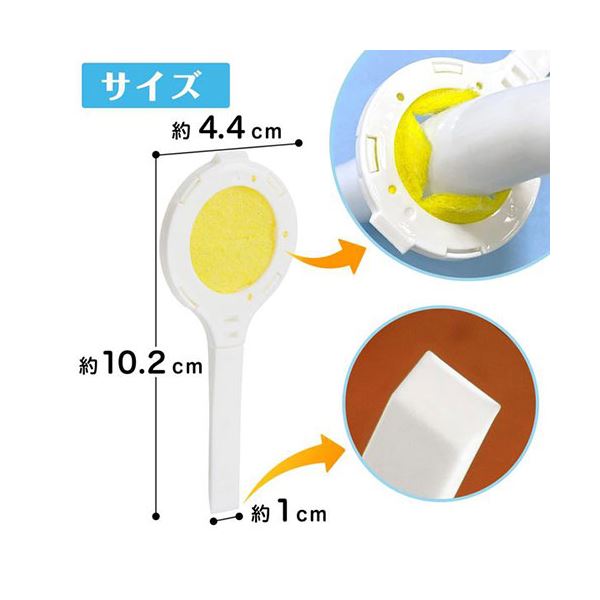 ○トイレノズルに通すだけでノズル表裏が一気に掃除できる円形クリーナーです。