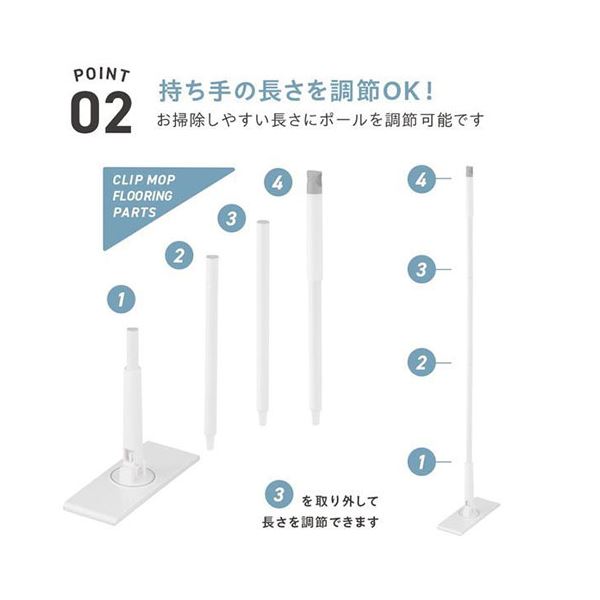 〇柄が長いから狭いすき間にも届きやすく、かがまずにラクな姿勢でお掃除が可能。