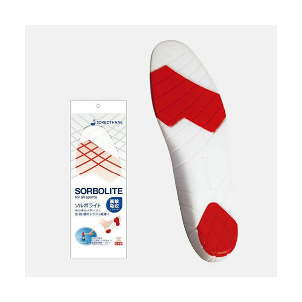 ●一体成型で本体にデザインした意匠により、屈曲性、フィット性が向上したソルボライトは、スポーツに対応した次世代の衝撃吸収インソールです。