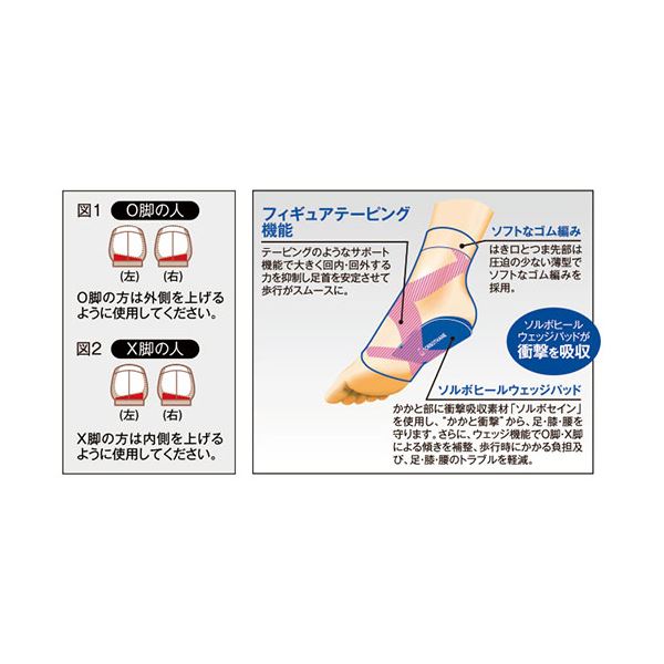 ●かかと部に衝撃吸収素材「ソルボセイン」を装着し、さらにかかとのブレを抑えるヒールロック機能も付いたサポーター。