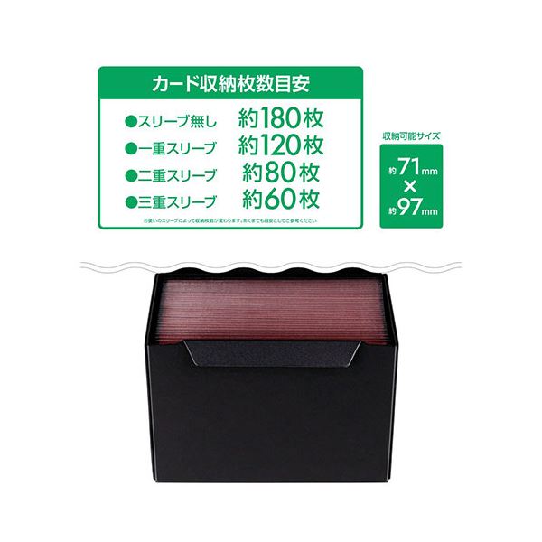 収納枚数 : 約180枚(スリーブなし)、約120枚(1重スリーブ)、約80枚(2重スリーブ)、約60枚(3重スリーブ)