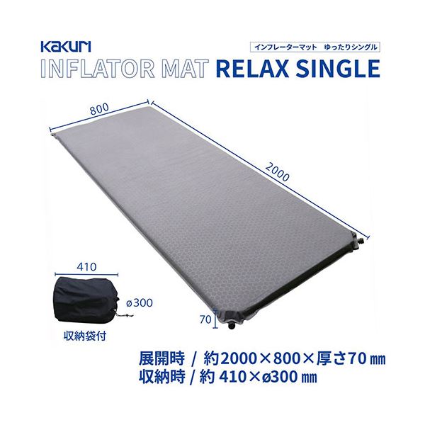 角利産業 KAKURI インフレーターマット 7cm厚 半自動的に空気が入る・アウトドアから災害時に ゆったりシングル 200×80×7cm KKR89207