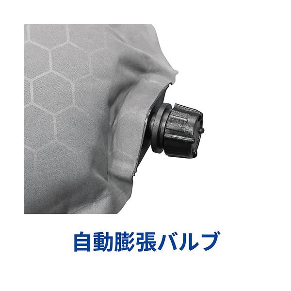 バルブを開くだけで半自動的に空気が入りマットが膨らむので、空気入れの手間がかかりません(自動膨張だけでは完全に膨らみません。空気を吹き込んで硬さを調節してください)。