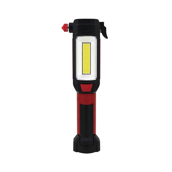 緊急時に活躍できる8つの機能付き!ガラス割りハンマー、フック、シートベルトカッター、360°自由回転、強力マグネット、ヘッドライト(最大約80ルーメン)、COBライト(最大約300ルーメン)、可動式強力クリップの8つの機能。連続使用時間 : ヘッドライト約8時間、COBライト約3時間。単4電池3本使用(別売)。