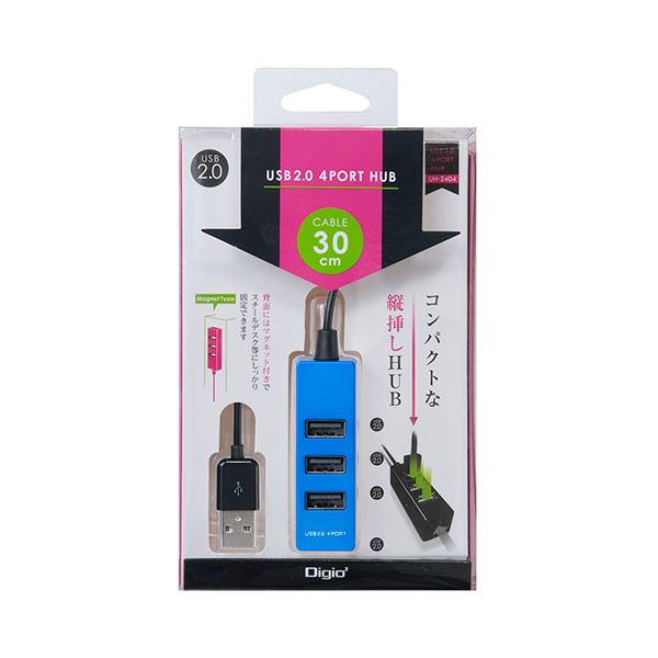 【3セット】 ナカバヤシ USB2.0 4ポートハブ 0.3m ブルー UH-2404BLX3