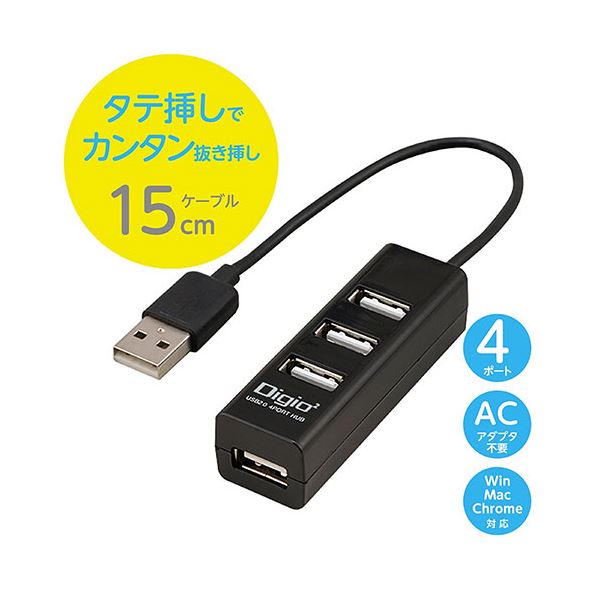 【3セット】 ナカバヤシ USB2.0 4ポートハブ 15cm ブラック UH-2604BKX3