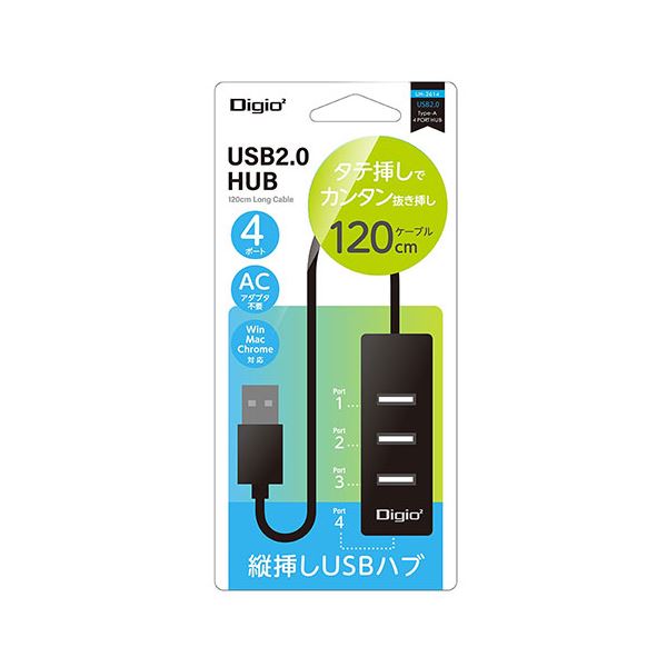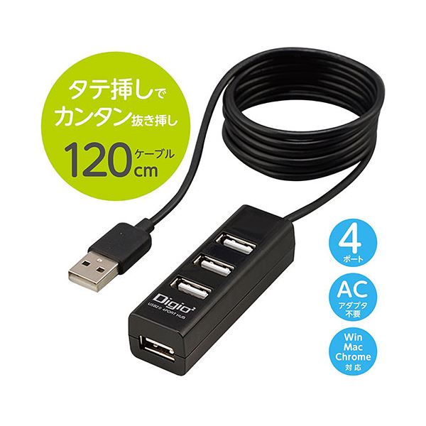 【3セット】 ナカバヤシ USB2.0 4ポートハブ 120cm ブラック UH-2614BKX3