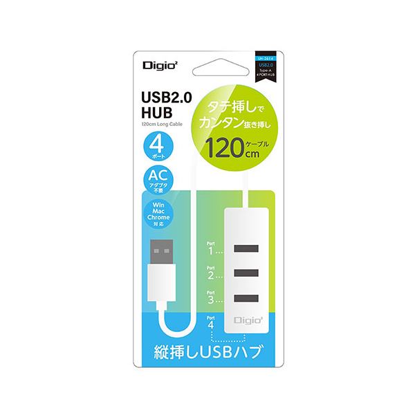 【3セット】 ナカバヤシ USB2.0 4ポートハブ 120cm ホワイト UH-2614WX3