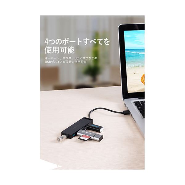 【3セット】 VENTION 4-Port USB 3.0 ハブ セルフパワー / バスパワー対応 0.15m ブラック CH-8283X3