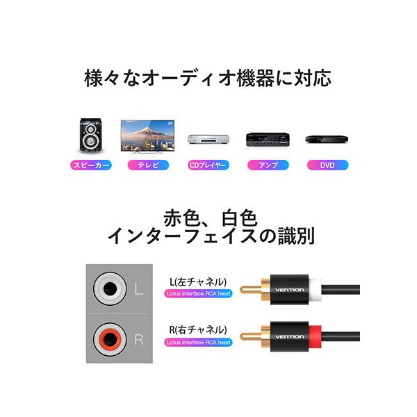 【5本セット】 VENTION 2RCA Male to Male オーディオケーブル メタルタイプ 3m ブラック VA-6371X5