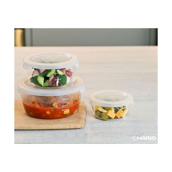 〇3サイズ展開で少し残ったおかずなどの保存や作り置きおかずなど、用途に合わせて選べるサイズ展開です。