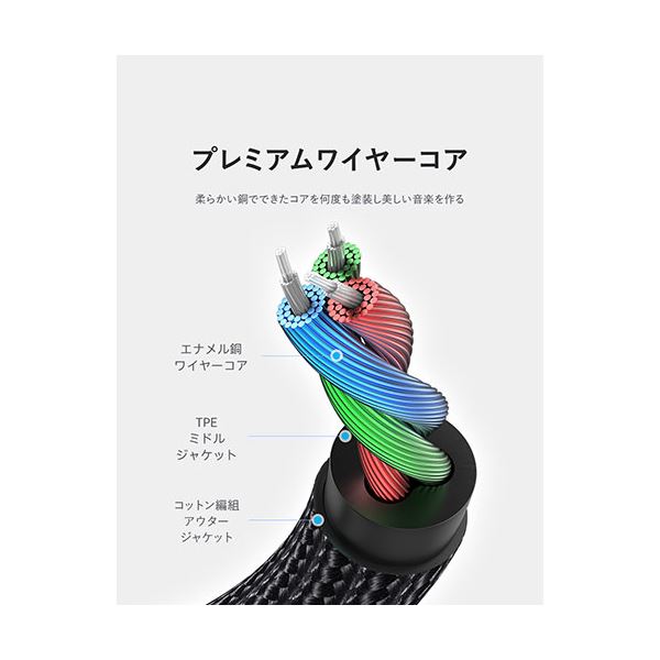 【5本セット】 VENTION 3.5mm Male to Male オーディオケーブル コットン編み アルミニウム合金 0.5m ブラック BA-4452X5
