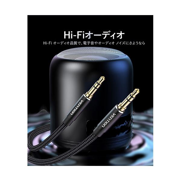 【5本セット】 VENTION 3.5mm Male to Male オーディオケーブル コットン編み アルミニウム合金 1.5m ブラック BA-4476X5