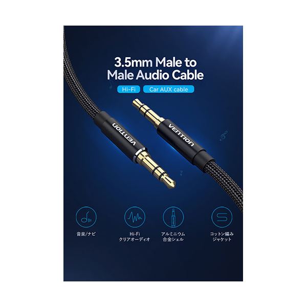 【5本セット】 VENTION 3.5mm Male to Male オーディオケーブル コットン編み アルミニウム合金 5m ブラック BA-4506X5