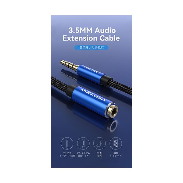 【5本セット】 VENTION コットン編み TRRS 3.5mm Male to 3.5mm Female オーディオ延長ケーブル 1.5m ブルー BH-4650X5