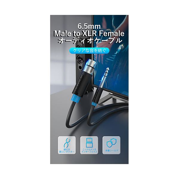 【5本セット】 VENTION 6.5mm Male to XLR Female オーディオケーブル 1.5m ブラック BB-5718X5